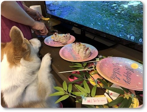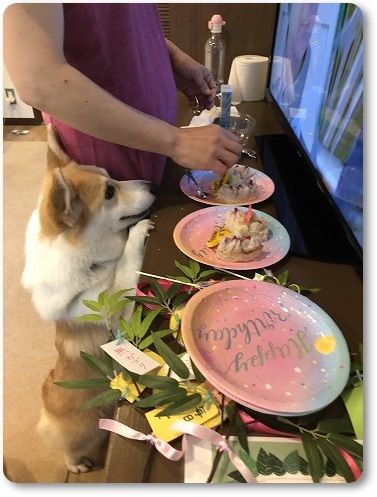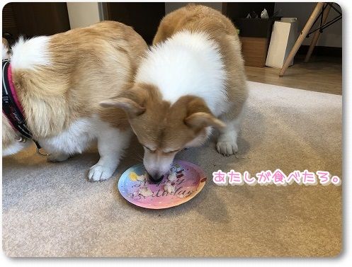 お部屋に戻って、朝ごはんを兼ねた誕生日ケーキを分け分け