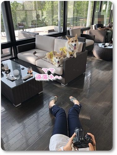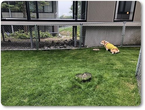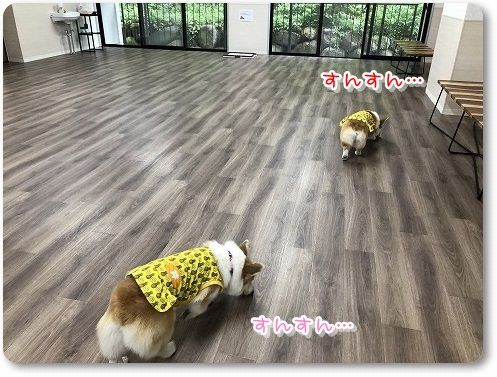 雨が降ってきたので、お部屋に戻ろうとしたら、室内ランにも入りたそうだったので入ってみました。