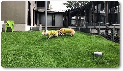 で、陽菜ちゃんに飛びかかる芹ちゃん、おもろすぎぃ~~~(≧∇≦)雨が降ってきたので、お部屋に戻ろうとしたら、室内ランにも入りたそうだったので入ってみました。