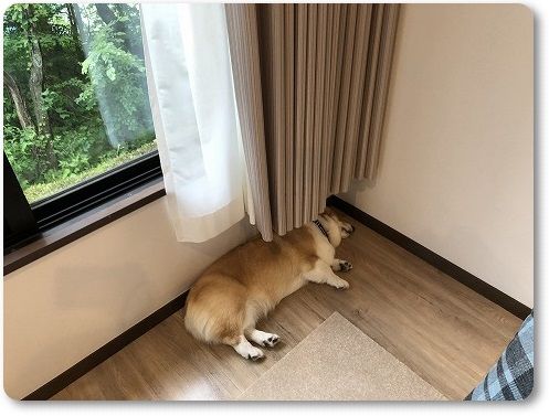 お腹も満たされたのか、カーテンの下で二度寝