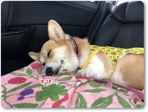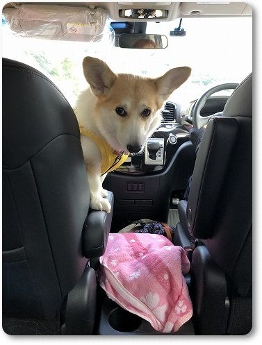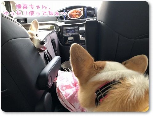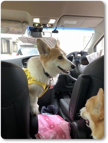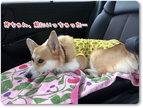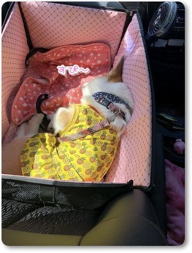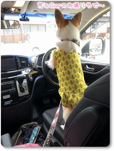 芹ちゃんは、いつもの助手席のボックスで。