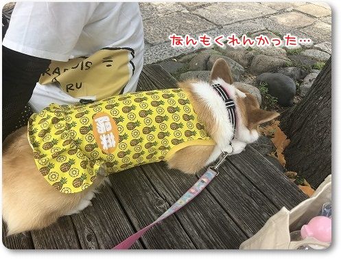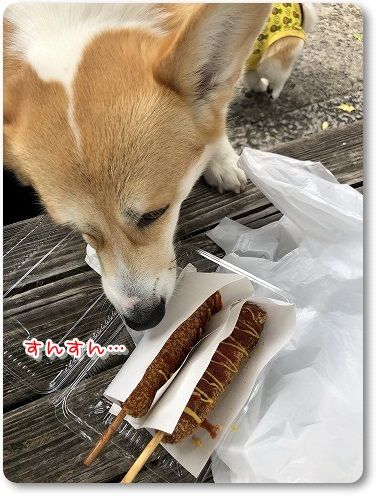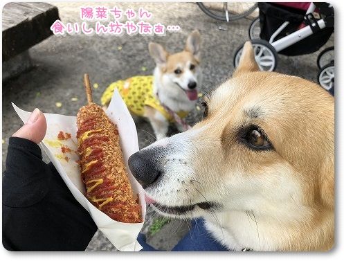 12時もすぎ、小腹が空いてきたのでチーズドッグを買って、木陰で食べることに