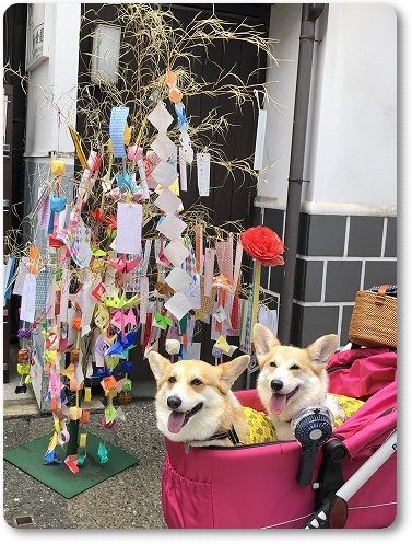 七夕の笹の前でも