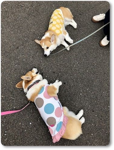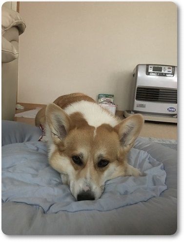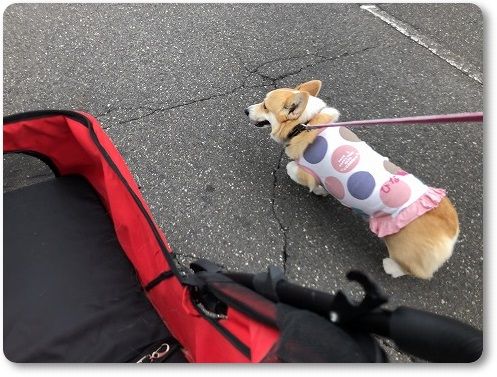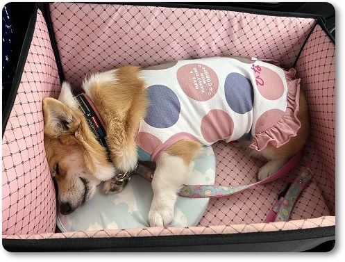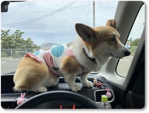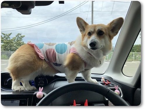 ダッシュボードに乗って、猛コーギー抗議( ̄ー ̄)ニヤリ