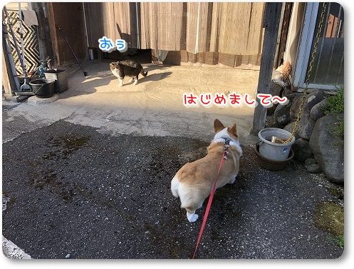 朝んぽ途中、いつも白黒の猫がいる家に、首輪をした別の猫ちゃんが