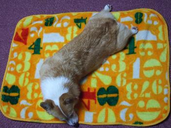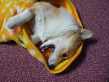 毛布を噛んだりして遊んでます。なので毛布はヨダレでベタベタ・・・