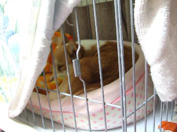 の布団の上で眠りについたところで、「花さん、寝んねだよ~お布団いくよ~」と抱っこしてサークルへ。
