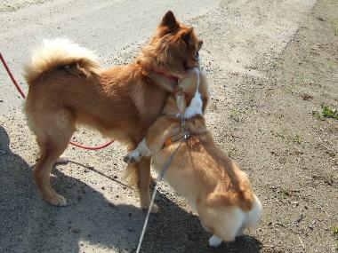 ピッタリ寄り添って、相手のわんちゃんも嫌じゃないみたい{スマイル}