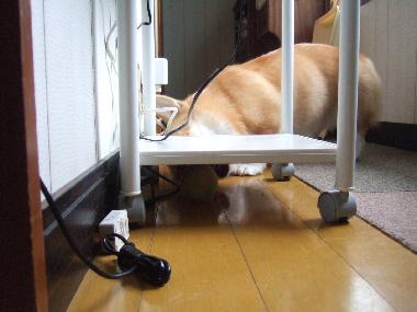 「どーしたの?」と見てみたら、電話台の下にボールがあったらしく、
