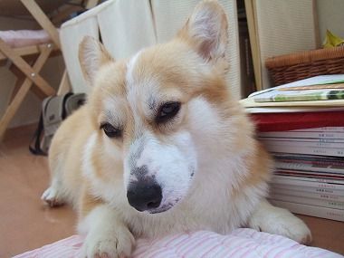 と、リビングにいくと花がいない。また玄関で寝てるのね~