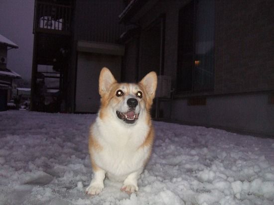 <色:#ff6600>雪遊びって楽しいよ</色>{いぬ}{ルンルン} 花より