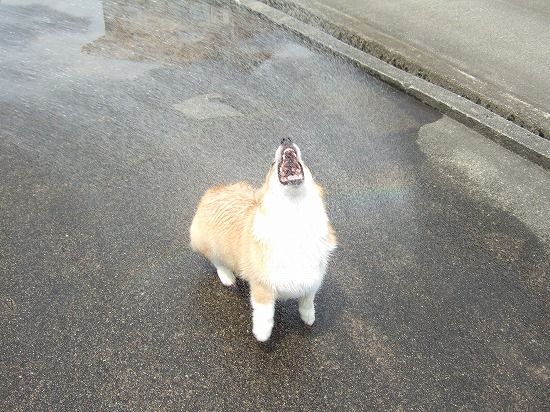 小太郎は頭や顔にシャワー浴びせられるのは嫌います{怒}