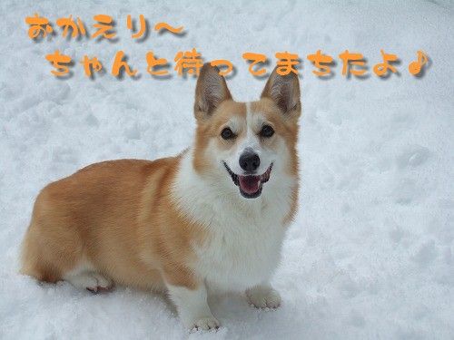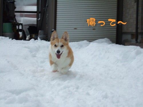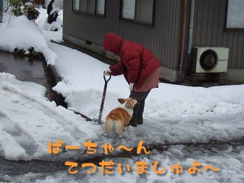 雪投げに飽きたのか、私に飽きたのか・・・(泣)ばーちゃんのとこへ行きました。