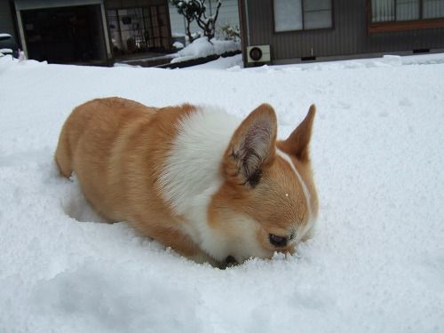 雪を食べる。 だからシッコ近くなるんだよ~