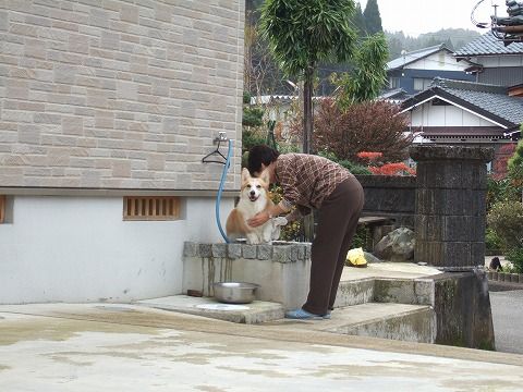 帰宅後は、ばーちゃんに足を洗ってもらい、遅めの昼食をとった花さんです。
