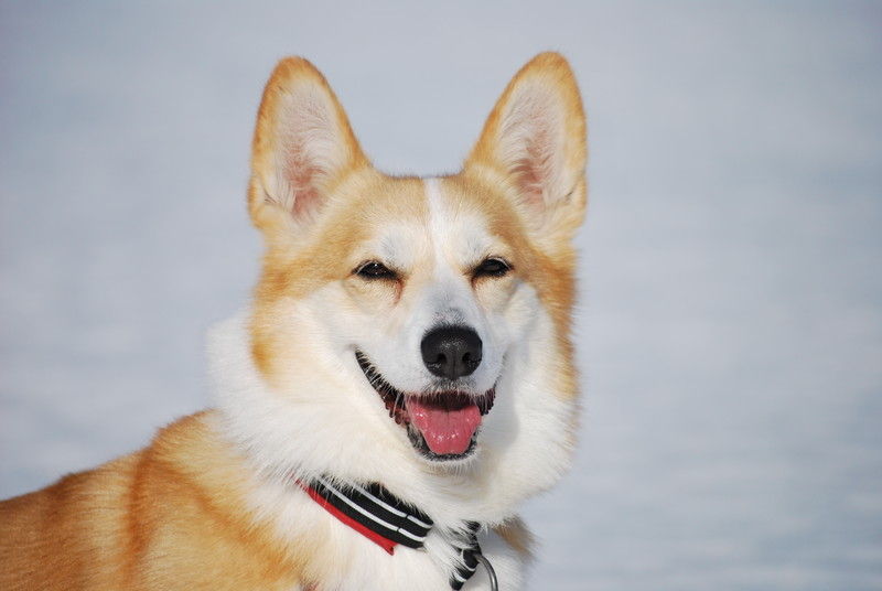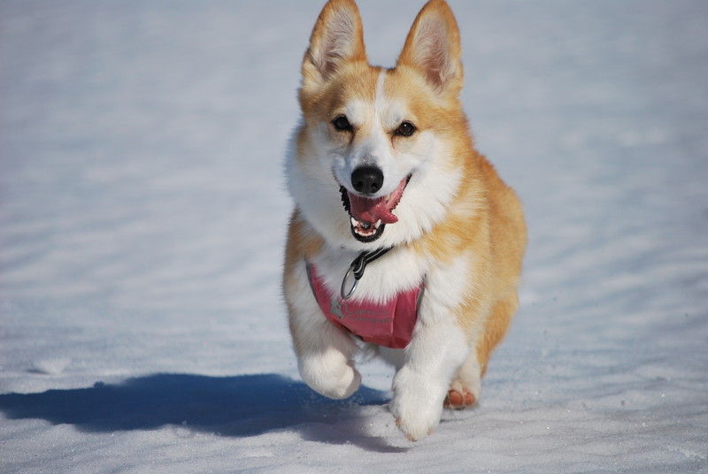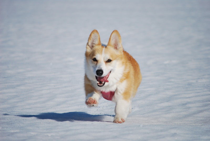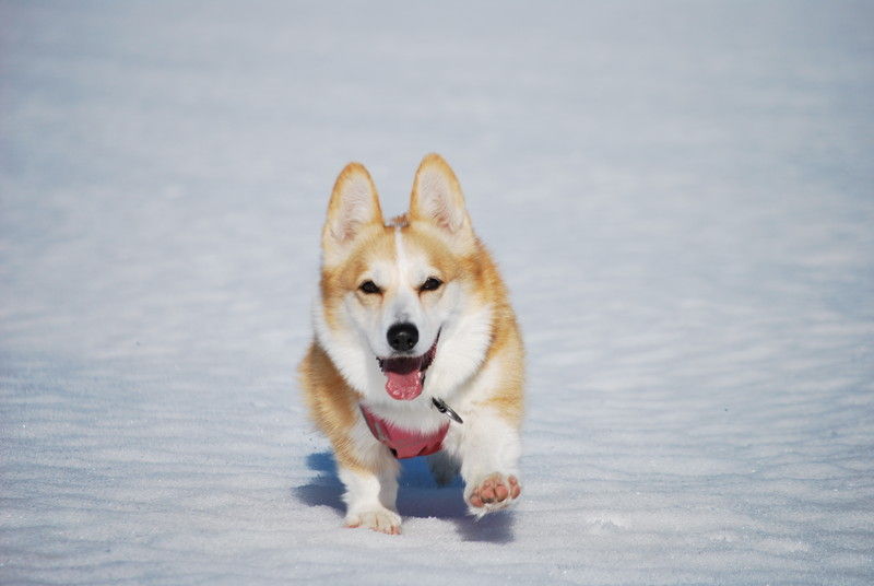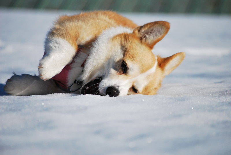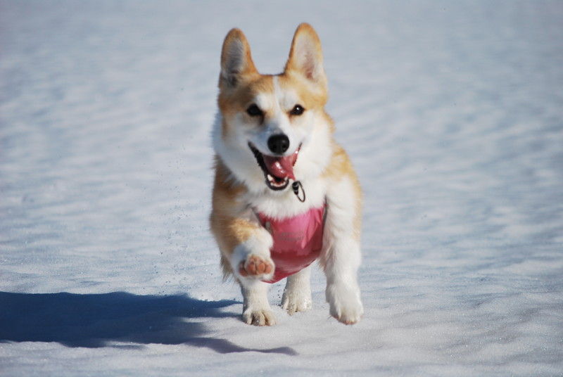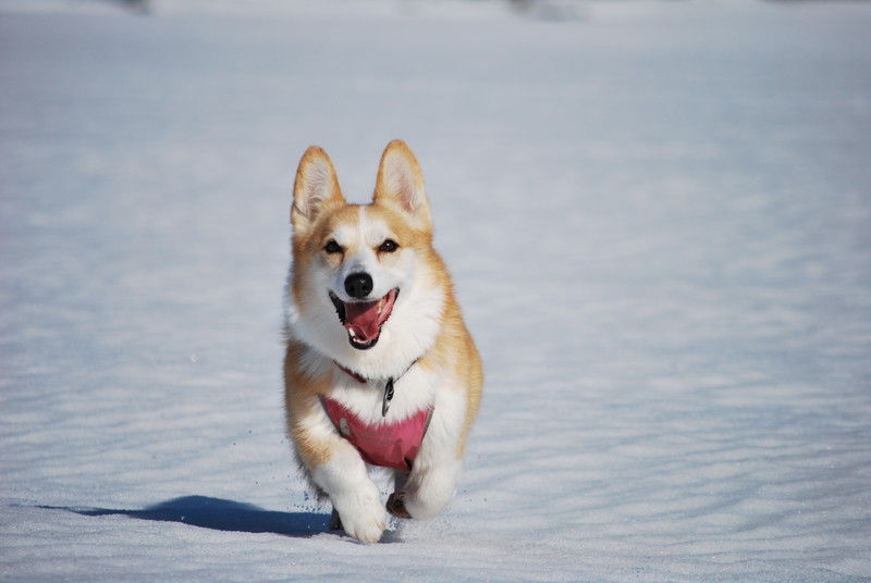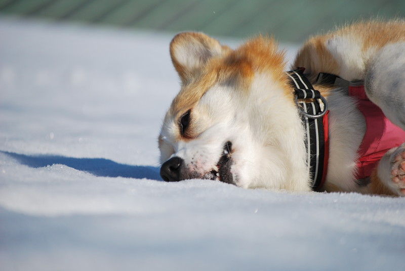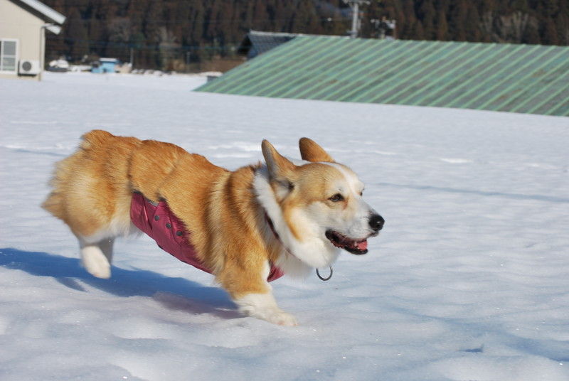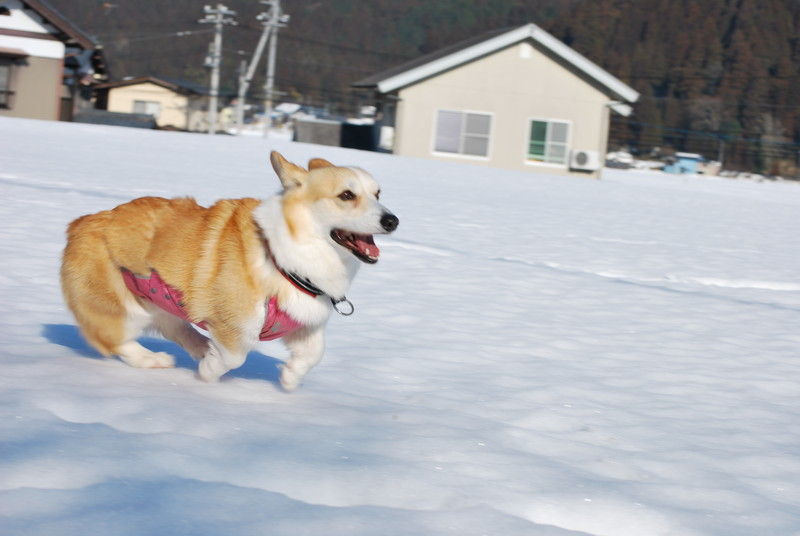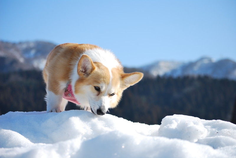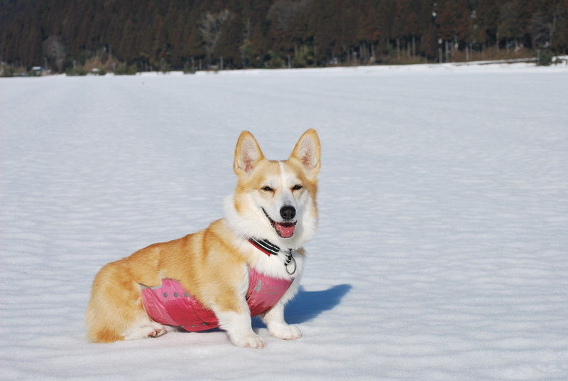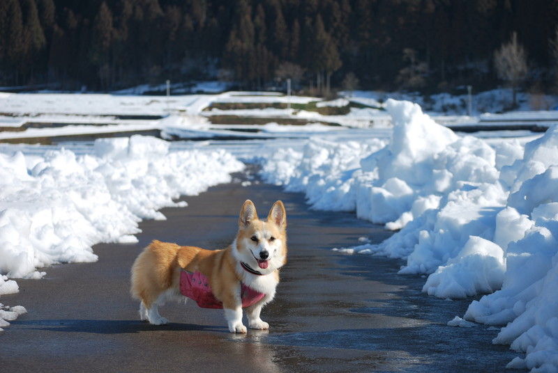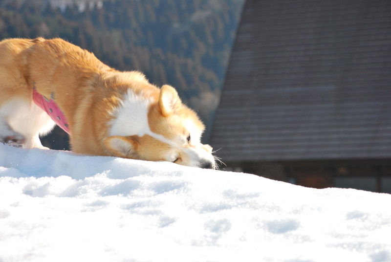 お出かけ早々、いつもの場所で雪を楽しむ花さん。