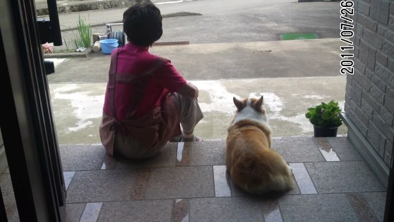 じーちゃんがいない日は、じーちゃんが帰ってくるまで玄関横で待機。