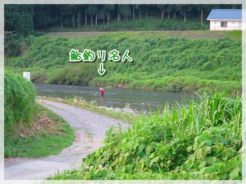 川につくと、鮎釣り名人が2人いたけど、花さんもお邪魔させてもらいました。