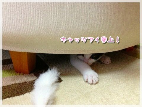 イスの下に隠れて猫じゃらしで遊んだりしてました