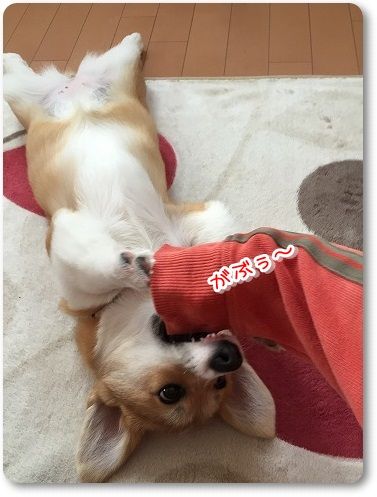 でも、噛んで引っ張るから、破れやしないかと冷や冷やもん{汗}