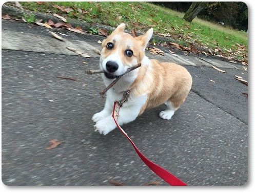 陽菜ちゃんが散歩する途中で枝を銜えてる姿を見るのが凄く好き、とてもかわいいです{ラブラブ}{びっくり}