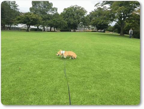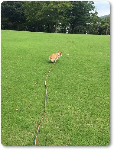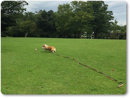 芝生の広場にきたら、走る走る
