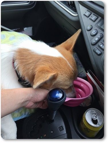 で、外ではあまり水分補給しなかったのに、車内ではガブガブ