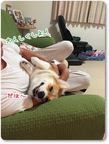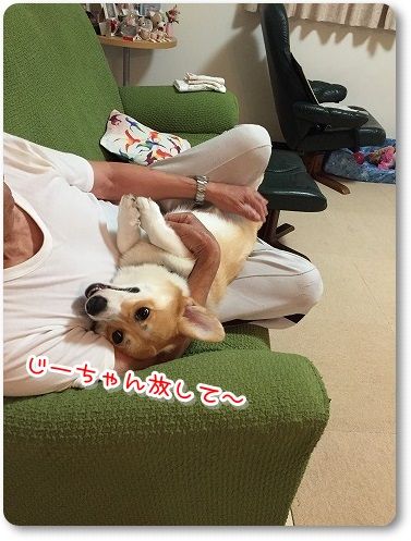 夕さんぽから帰って、夜ご飯までの間、じーちゃんにちょっかい出してたら、