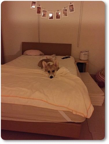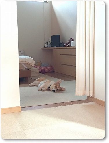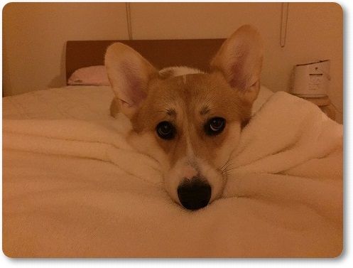 今朝は、隣のワンコ用ベッドで寝てたけど{スリープ}