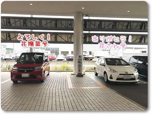 今の芹ちゃん号、納車の日、節ちゃんも連れてって、引継式、ディーラーでしたよ~。