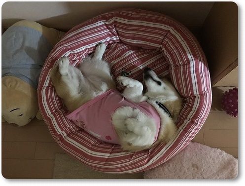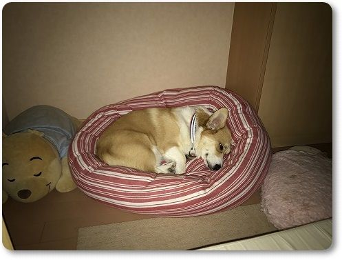 いいなぁ。ベッドで眠る可愛いワンコで(^o^)v