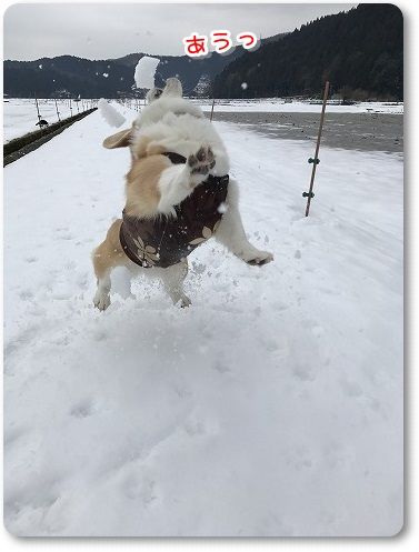 雪玉に挑んで、あうっのジャンプ、かわいすぎるぅ~♪