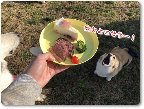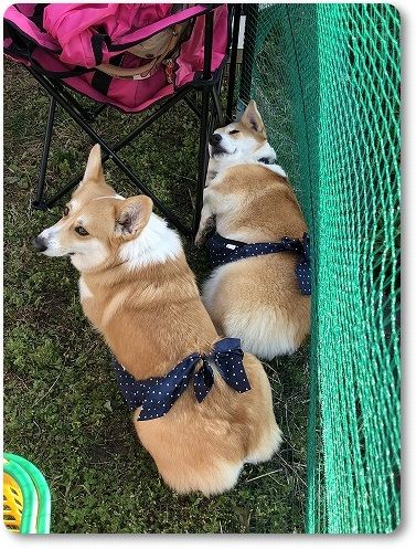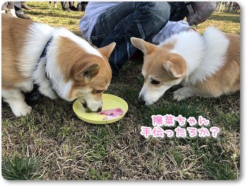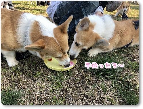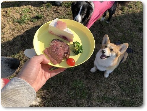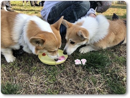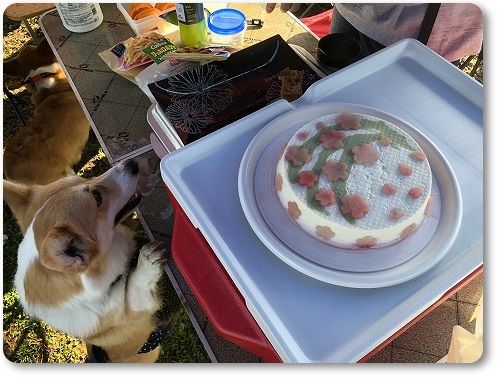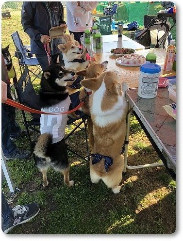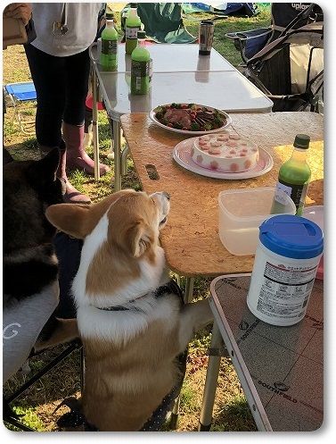 他の犬より、コギズは一番食いしん坊みたい{汗}、全員がウマウマのテーブルに寄ってる{ショートケーキ}{ラブ}