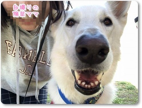 夕輝君とのツーショット、大人しく写ってました📸(恐らくホワイトシェパード⁉)また集合写真も皆んな大人しくしていて決まってます👌