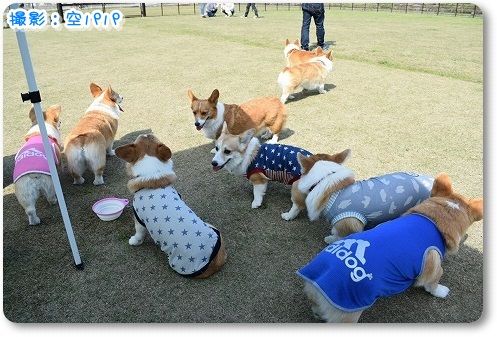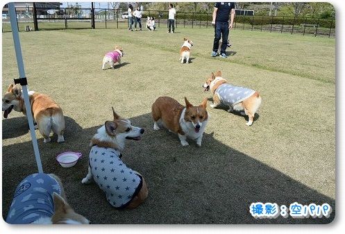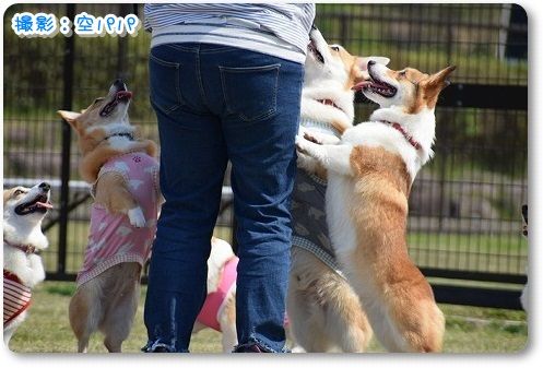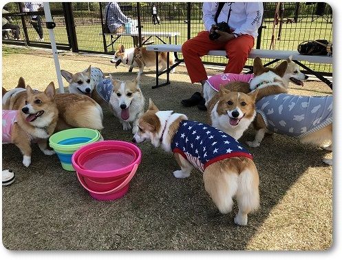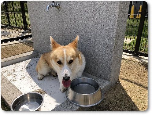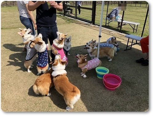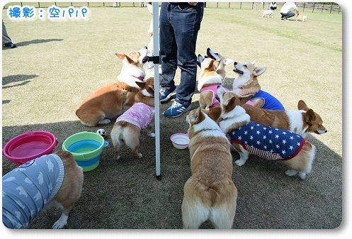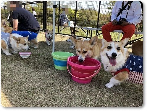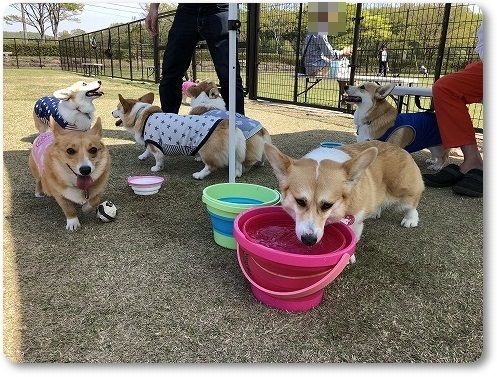 給水所(日陰)にワラワラ、おやつ支給タイムでワラワラ🐶🐶🐶夢のような光景❗