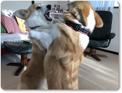 陽菜ちゃんが、ひっくり返されても、首アムアムされても、スーッと芹ちゃんに寄り添うよにお誘いしてくれるから、芹ちゃん疲れてても、よしっ!てつい遊んじゃうんやろなぁ~(^^)