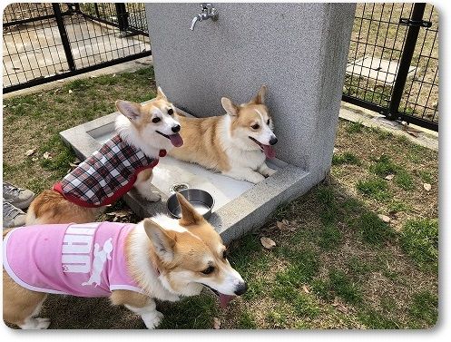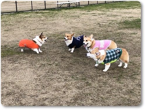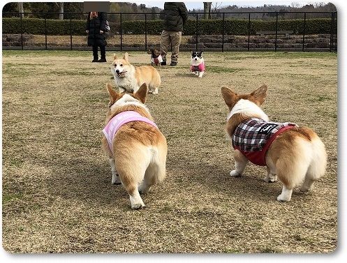 元気に走り回るコギたちを見て、満足満足