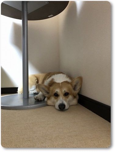 何かにビビって、部屋の隅でおとなしくしてる陽菜ちゃん