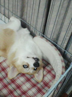 ないに等しいシッポをフリフリ、オスワリして待ってます