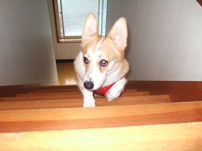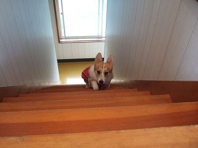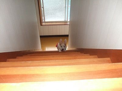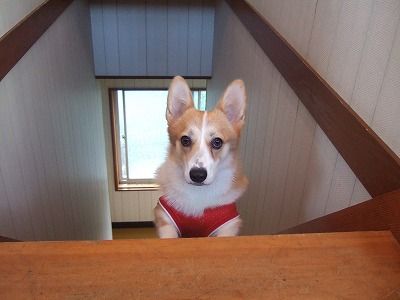 が留守(仕事)中の時も一人で階段を上り、じぃ~っとしてるそうな。(まだ下りれないからね)