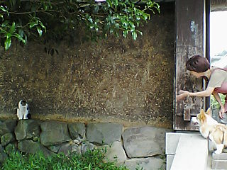 さすがの花さんも、こんなに狭い石垣は歩けませ~ん。いつものように追いかけっこしてると、