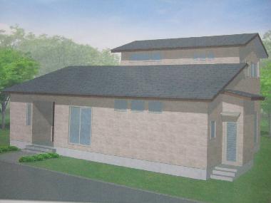 正面2階部分だけがアイボリー系に変わります。