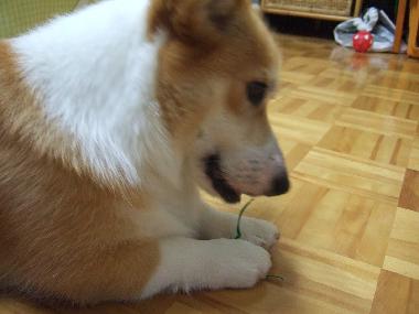 口の中に突き刺さると危ないので、すぐ取り上げました。