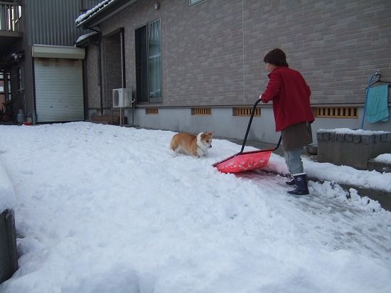に帰ると、ばーちゃんが雪かきしてました。