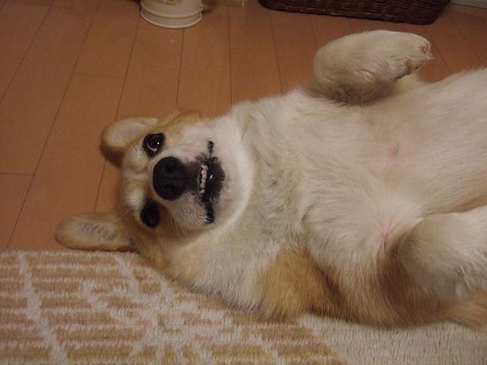 地面で体を拭き始めました