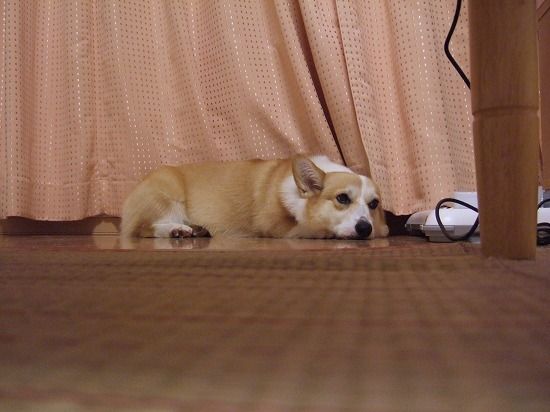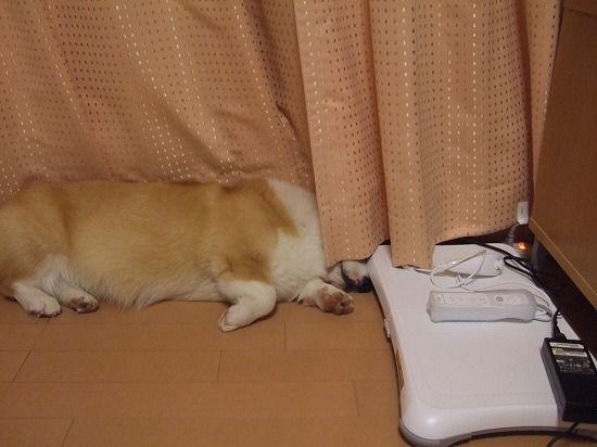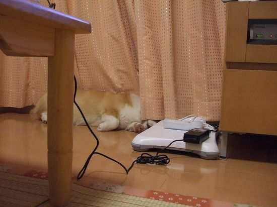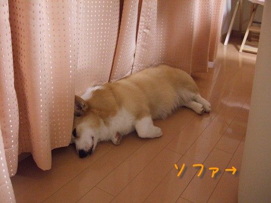 こんな体制で、ヘソ天になったり寝返りうったりするので、カーテンが開いてしまうこともしばしば