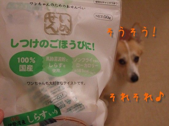 せめてローカロリーなものを・・・と思って買った『いぬせん』を3枚あげますた。