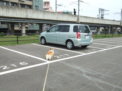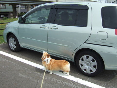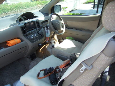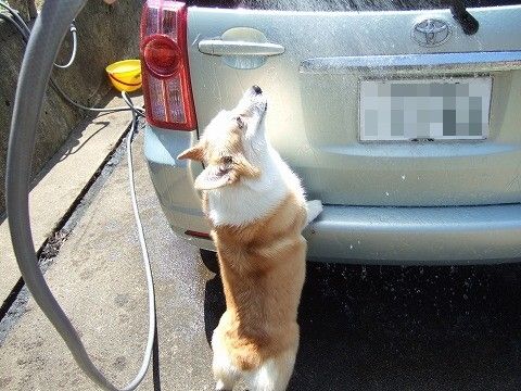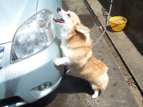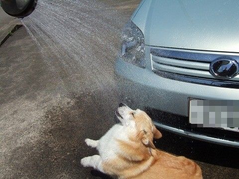 でも、天気いいし、ヒマそうだったので、花さんには洗車を手伝って(?)もらうことに。
