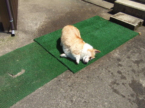 気が済んだのか、今度は足マットで濡れた体をスリスリ~