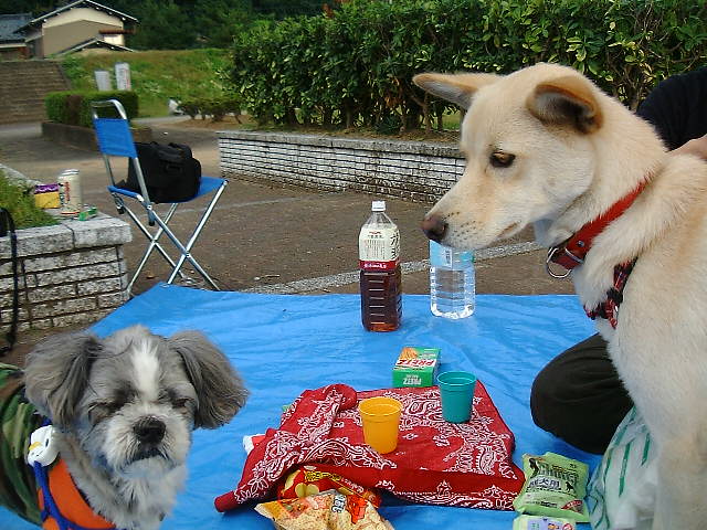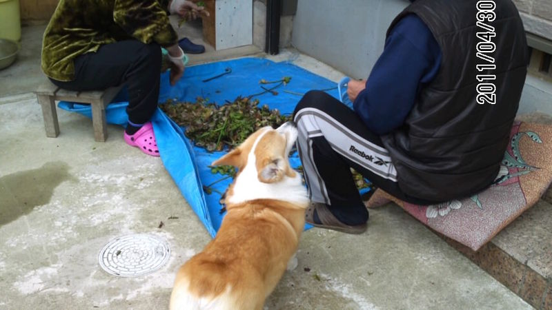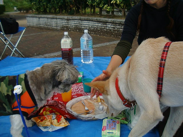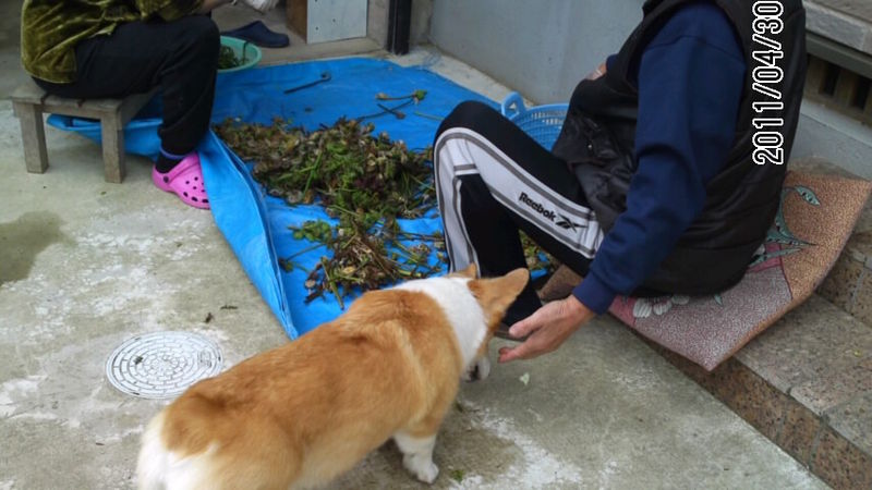 じーちゃんもしっかりポケットの中にビスケットをしのばせてて、花さんにあげてました